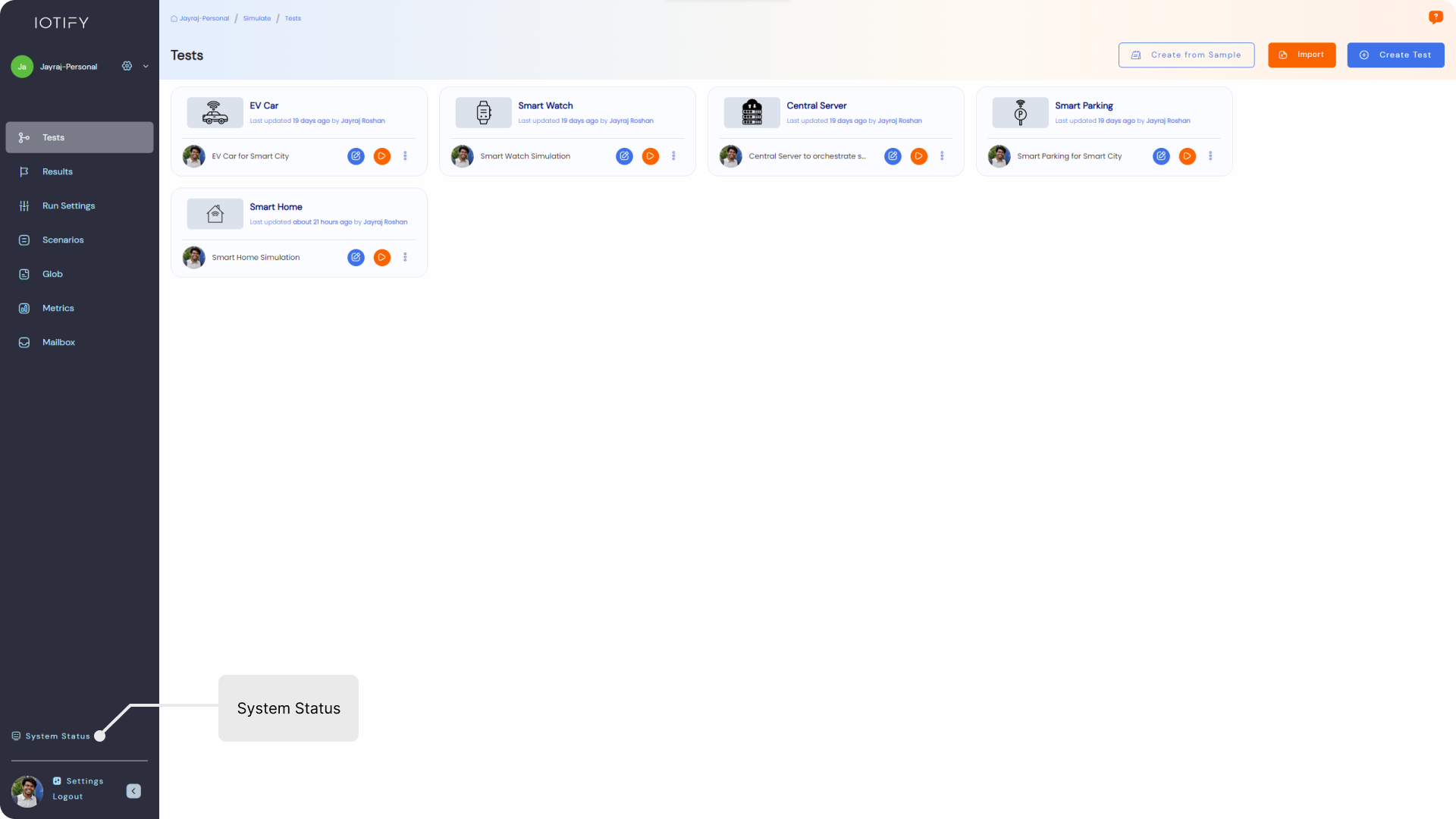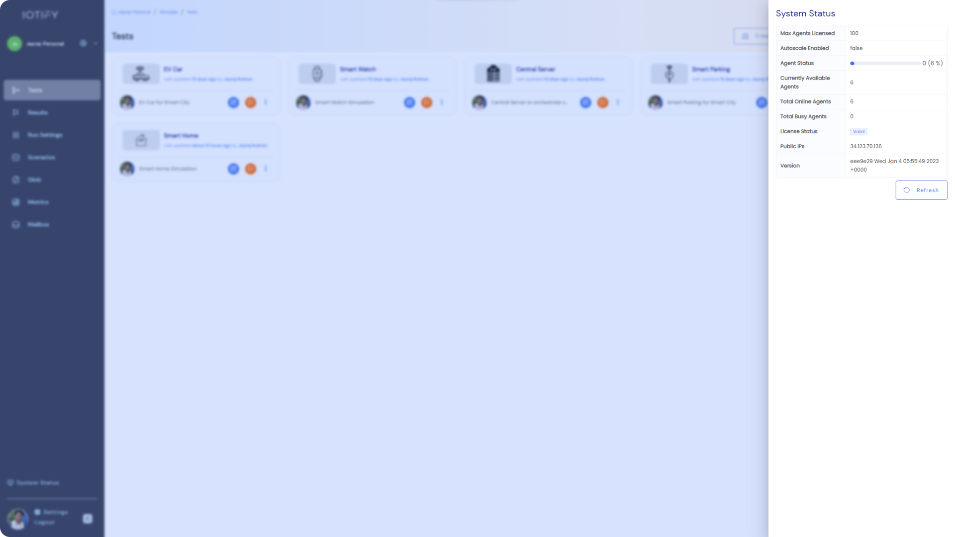 This will open up the system status sidebar. Here you can see the maximum number of simulation agents you can run and how many of them are busy at any given point in time. You can also get the Public IPs for these simulation agents from here.
